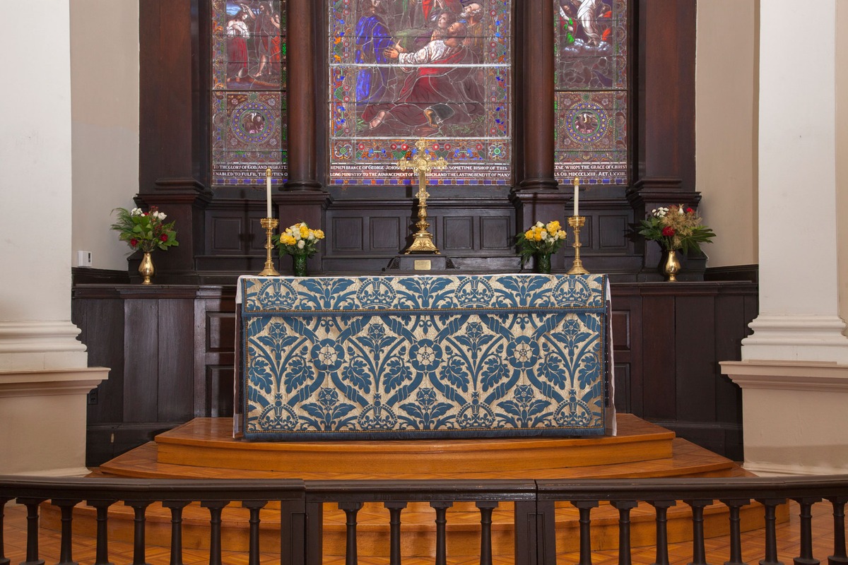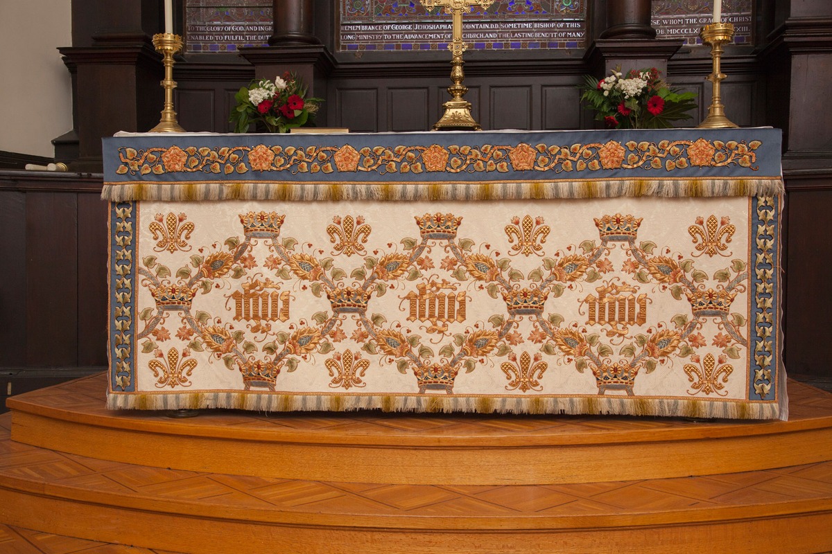 La catedral alberga una notable colección de frontales de altar, todos restaurados en 2001 por feligreses bajo la supervisión del Centro de Conservación de Quebec. El más famoso, un regalo del rey Jorge III en 1761, es ahora demasiado delicado para su uso. Tradicionalmente, las cortinas de coronación de la Abadía de Westminster se reutilizaban como frontales de altar para sitios anglicanos clave, como se ve en la tela azul y dorada de la coronación de Jorge VI, de la cual se exhibe una porción aquí. Otra pieza notable es un frontal blanco, azul y dorado elaborado por las Hermanas de San Juan el Divino en Toronto, regalado en 1904 para el centenario de la catedral.